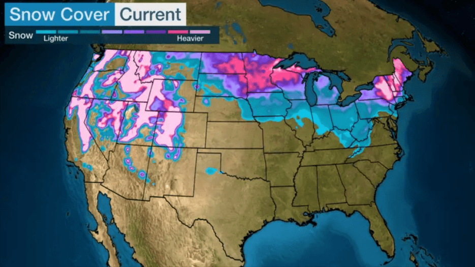 In the example above, you can see the differences in snow cover between states and understand trends in the winter storm because the heatmap represents snow cover across regions of the country. The warmer colors on the heatmap above indicate higher levels of snow and precipitation.
